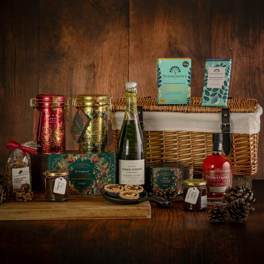 A refined celebration of festive indulgence. The Barbury Hill Signature Hamper pairs traditional method sparkling wine, artisanal treats and gourmet accompaniments with decadent confectionery and an indulgent Christmas liqueur.